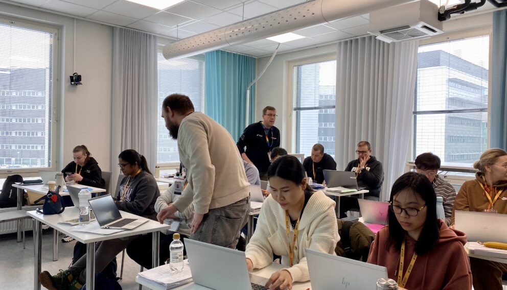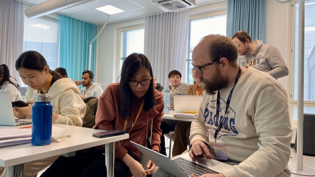Koulutusten kieli on selkeä suomi, ja tarvittaessa kouluttajat avaavat asioita myös englanniksi. Opiskelijat tukevat toisiaan ja käyttävät apuna esimerkiksi “100 vahvuutta” -materiaalia, joka auttaa löytämään sanoja omien ominaisuuksien kuvaamiseen.
